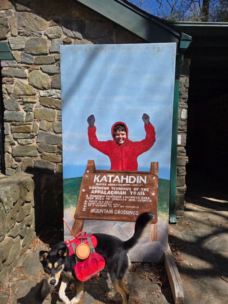 After lunch, we descended a rocky 3 mikes into Neel Gap. Where we saw the first road and heard the first cars in days. Once at the Mountain crossings store, we did a couple of days resupply, ordered a pizza, got a shower, charged devices, and got my passport stamped. Bo enjoyed the sausage and pepperoni from the pizza, and we chatted with other hikers as they came and went.