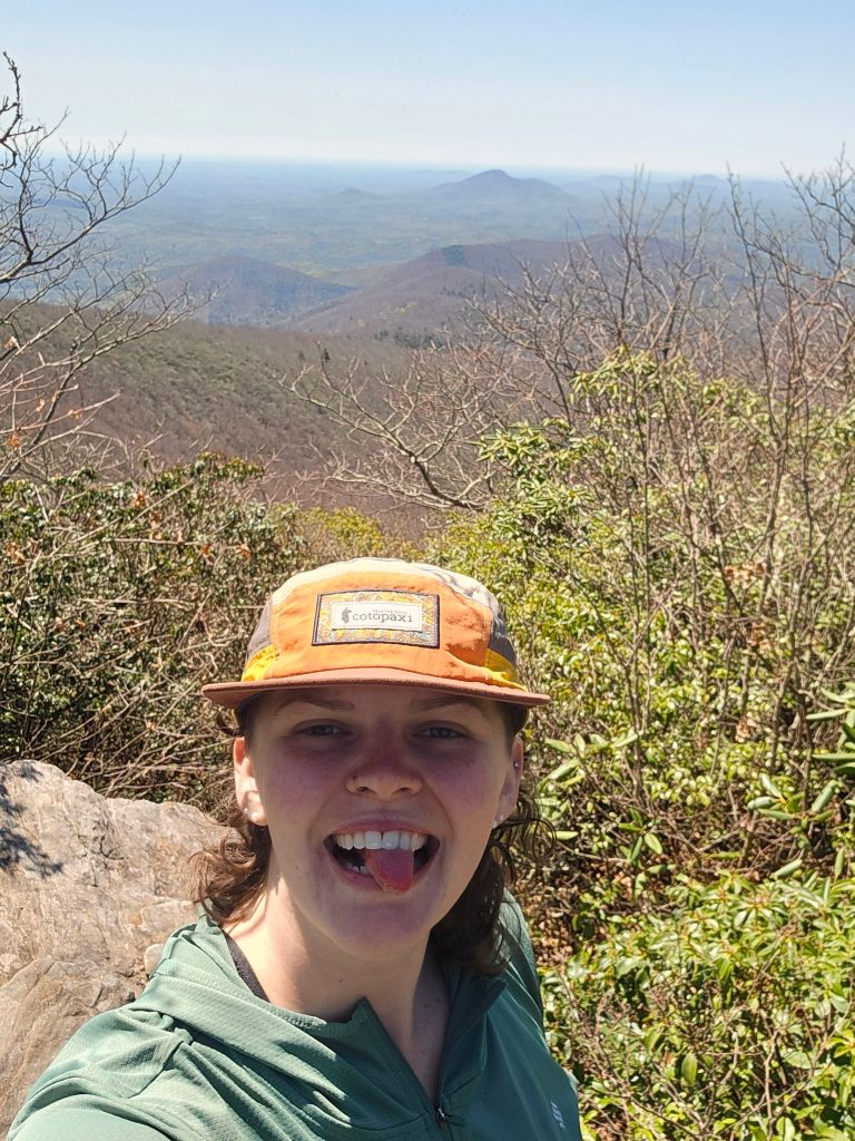 Bo and I had a big breakfast the morning, filled with eggs, sausage, hashbrowns, endless fruit pancakes, and coffee. Once again, everyone gave Bo their leftovers, and I delivered more sausage to Daisy. “Poppins,” Daisy, Bo, and I were shuttled together back to Unicoi Gap, and it was a very steep climb to begin with after 2 restful days prior. We navigated through lots of mountain laurel on our way to Rocky Mtn. There was an overlook that had a view of Tray Mtn, where I ate my heavy cucumber that I decided to pack out.
