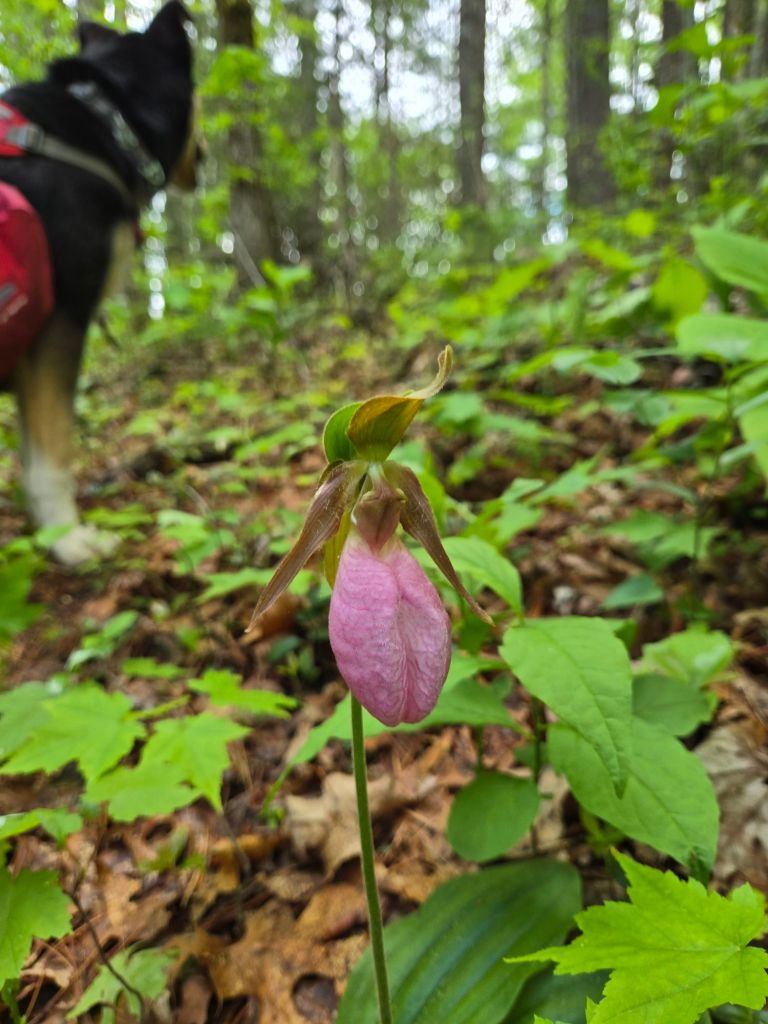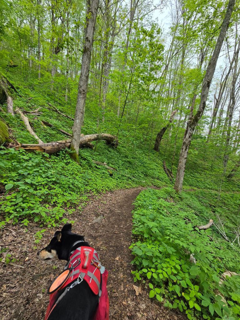 I felt pretty slow today. My feet were killing me, and Bo was pulling a lot. The mayapples are blooming, and I was glad to make it to the shelter today. Spoons pushed on to Hot Springs to finish up the downhill for the day. I made another rambomb and some flavored water. There’s a group here that is taking a class to learn how to backpack. I almost set up my tent under a snag. Luckily, someone told me to look up, and I just laughed. Someone dropped off beer and suckers so of course I had to have one–and they were still cold!