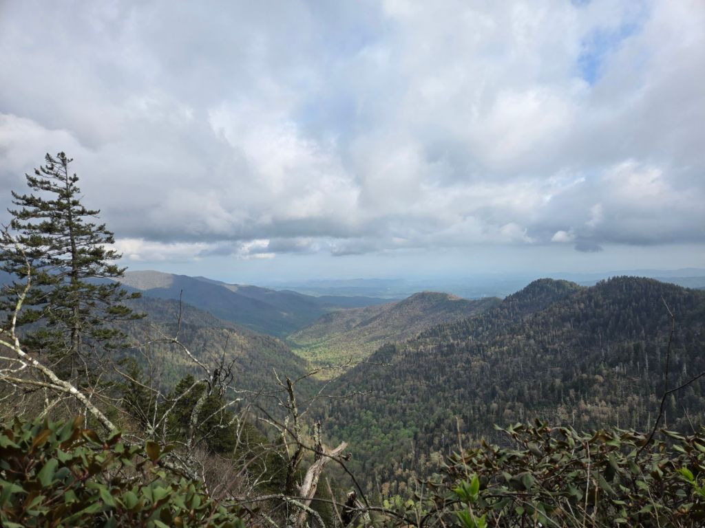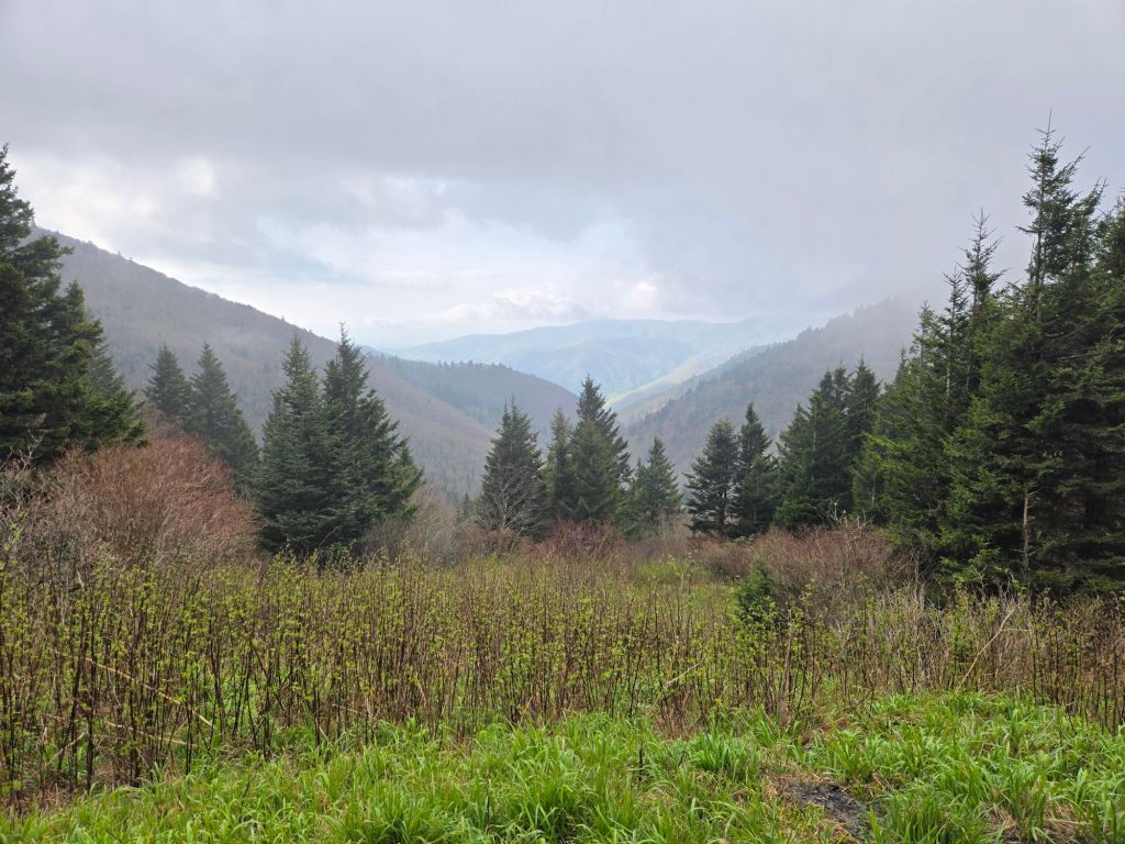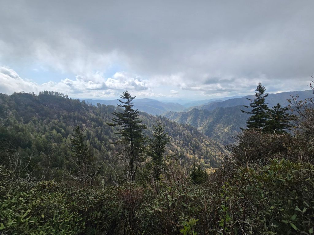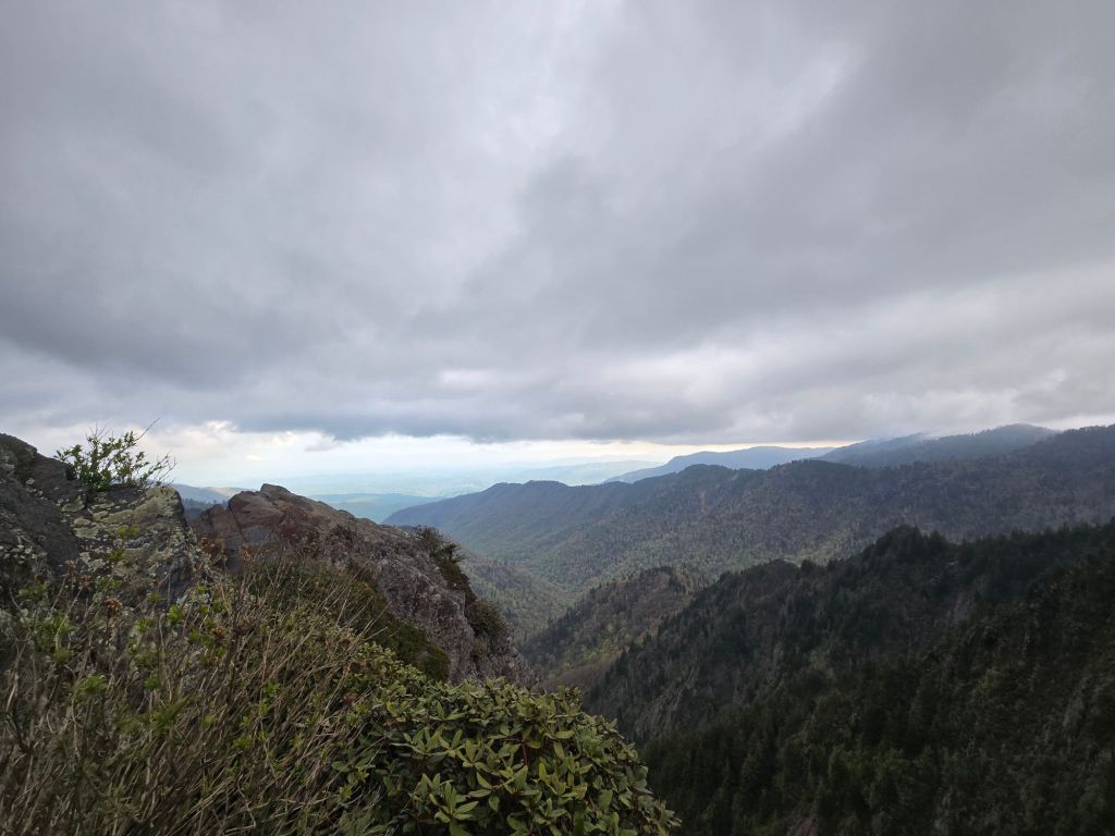 I had a pretty laid-back morning and stayed close to “Atlas,” “Thirsty Boy,” and “Alpha.”” I went up to Charlie’s Bunion and was met with a breathtaking view of the clouds rolling in. I have yet to see any bears while in the Smokies. I passed Atlas taking lunch, and then I took lunch at Eagles Rock. It was very mossy and there was lots of downed wood. I walked up Laurel Top after the bunion.