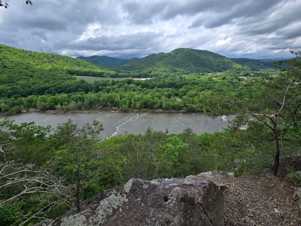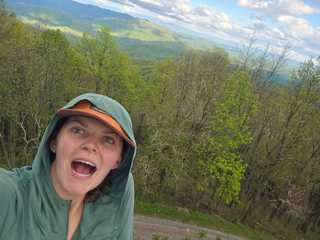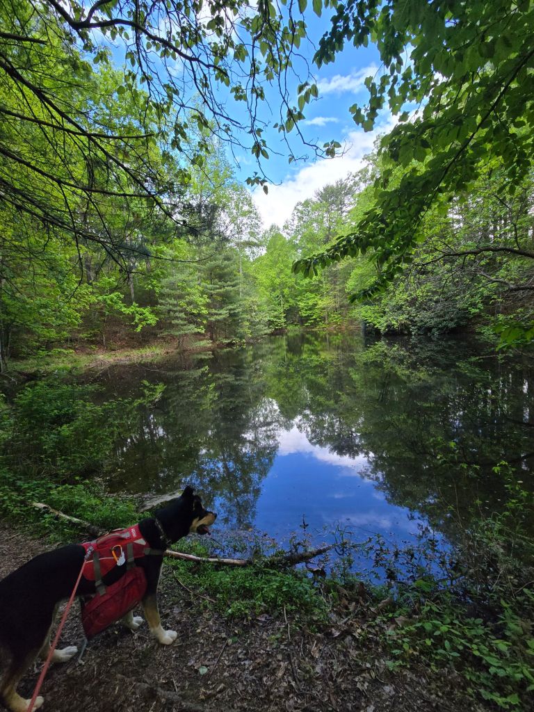 Bo and I started hiking again around 1330, and I accepted that we would not be making it to the shelter that I had originally planned to. Due to the hurricane, the hot springs are closed and undergoing repairs. I wasn’t in a very good headspace leaving Hot Springs–I felt frustrated but wasn’t sure why, my heels were rubbing and painful in my shoes, the day was ticking by, Bo kept getting on my nerves pulling and jerking erratically. I listened to music while hiking for the first time in a month, which helped elevate my mood slightly. The music sounded so crisp and vibrant after not hearing it for so long.
