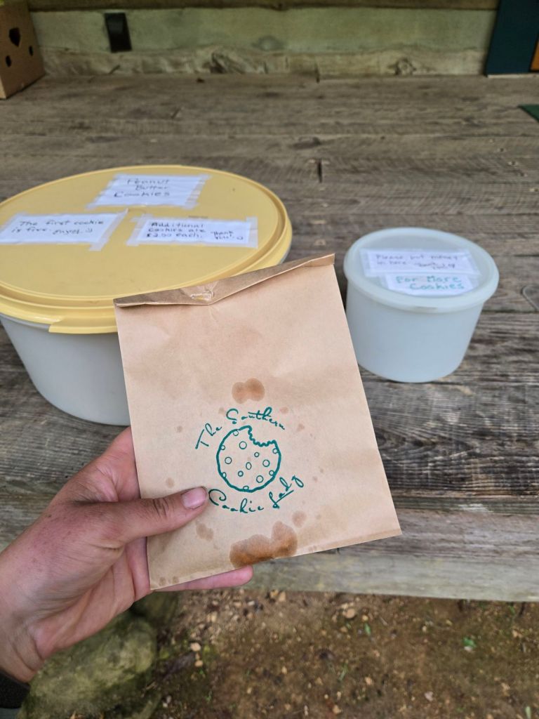 Bo and I entered into the Cherokee National Forest. We also met the Southern Cookie Lady. I got a peanutbutter cookie, Bo got water and treats, and I got to throw away our trash.