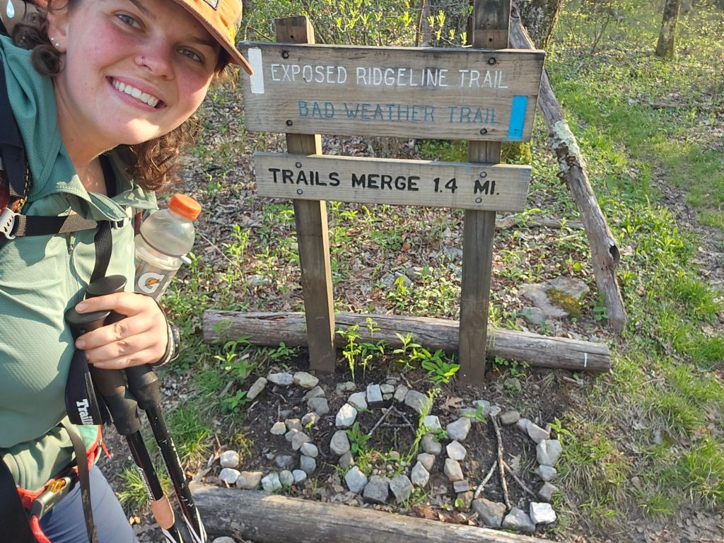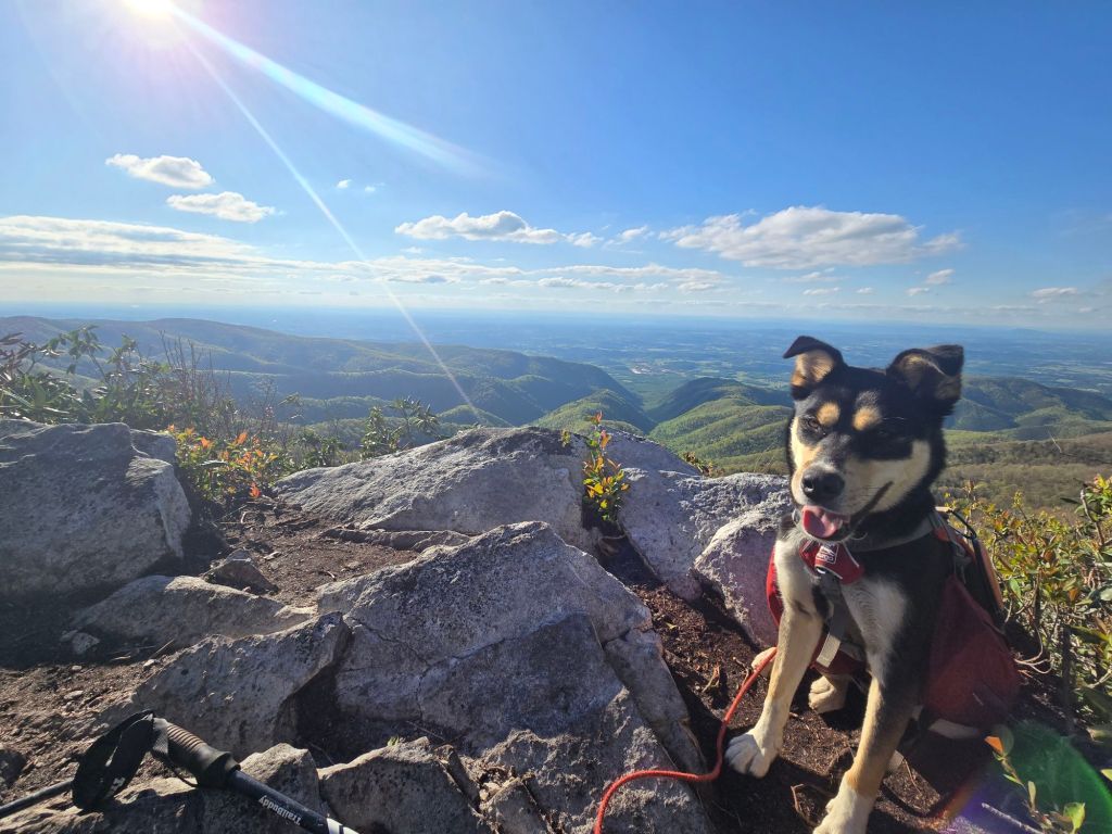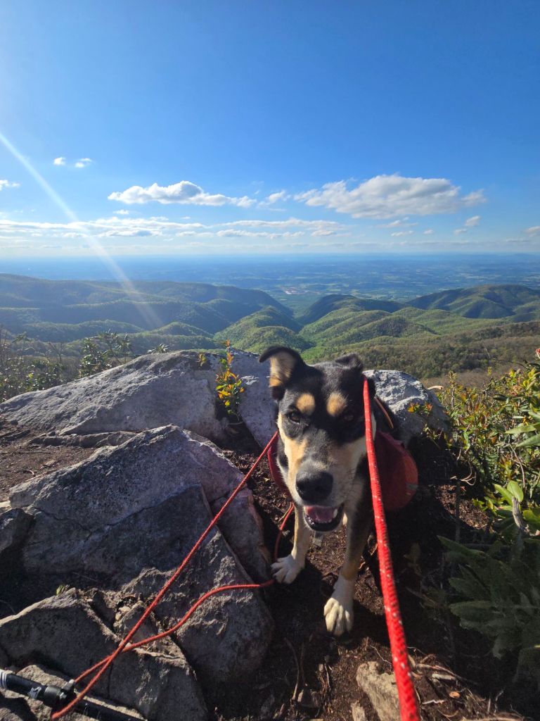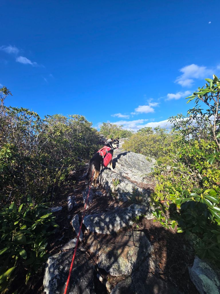 Bo and I pushed on 2.5 miles to the spring and filled up all the water. There were already lots of tents set up in the field, so Bo and I decided to push on toward whiterocks cliffs, then ridge climbed to Big Firescald Knob. There were many views and even a bad weather bypass trail. It was steep and rocky with 360-degree views. It was pretty sketchy, and I fell a couple of times. I tried giving Bo a longer lead, which helped a bit. We stopped at Howard’s rock, and then we hit mile 300!!!