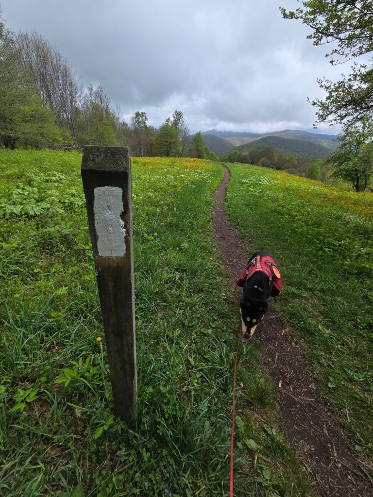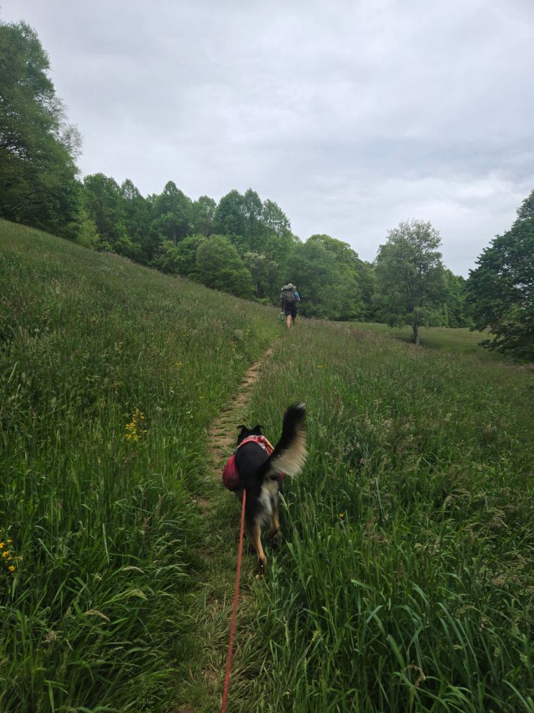 Bo and I walked up on another thru-hiker with a dog (who I would later meet and learn that they are “Quill” and Dude). Bo and I rushed to try and put some distance between us because Bo pulls hard trying to catch up to people, and even more if there’s a dog ahead. I hope we won’t leapfrog them too much that way both our dogs will be calmer and walk well.
