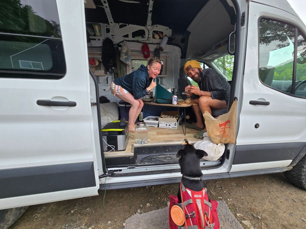 There was a couple in their van outside the hostel that made the hikers breakfast. They made us steak and eggs and toast. The steak was marinated in butter and fresh rosemary sprigs. Bo was hand fed pieces of meat from the van like royalty!
