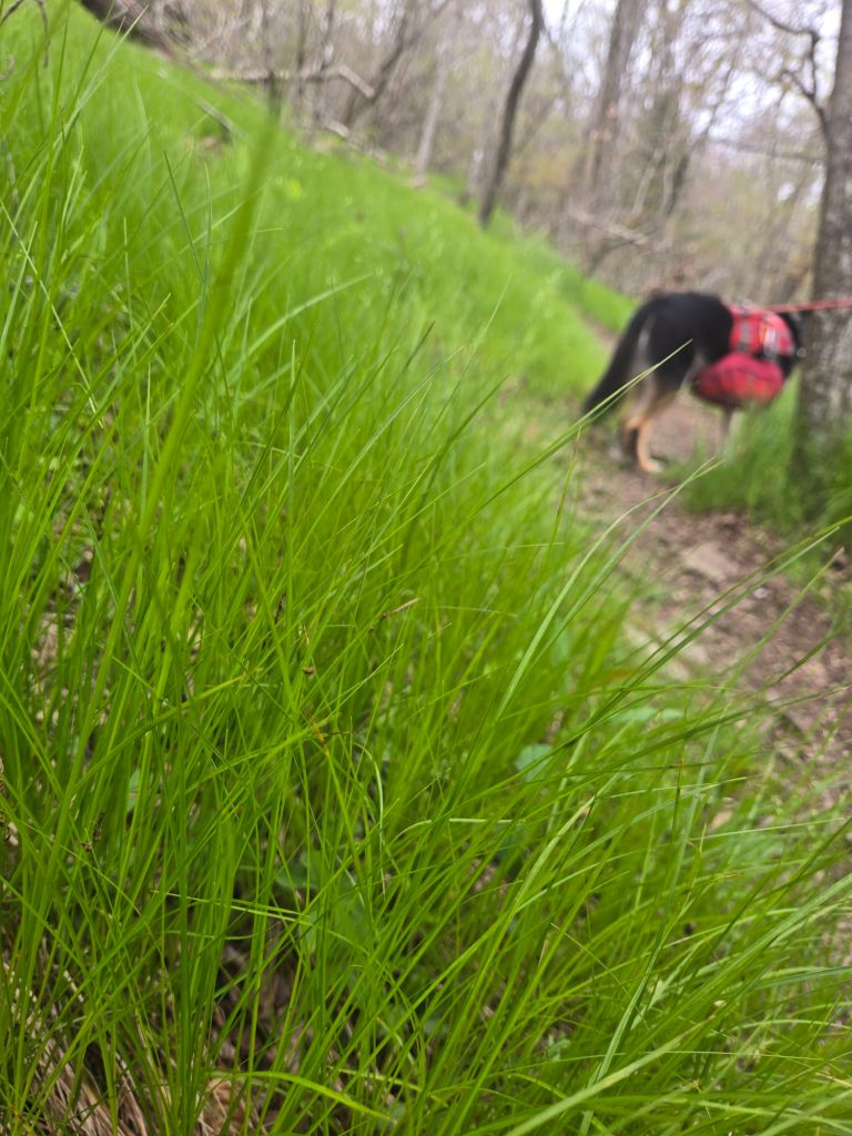 Bo and I were out of water, but found a good spring before we headed up Unaka Mountain. We had a solid climb, with Easter grass all along the trail and some forested sections. I decided to start some of the Helene Reroute this evening and go to more miles to a campsite by a creek.