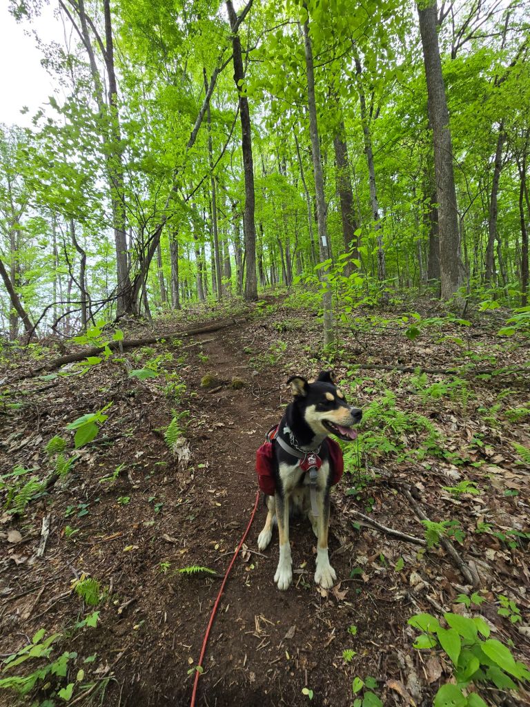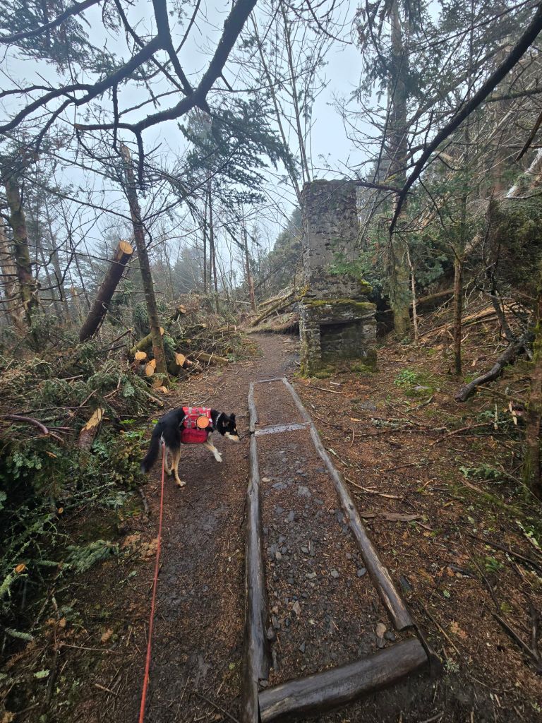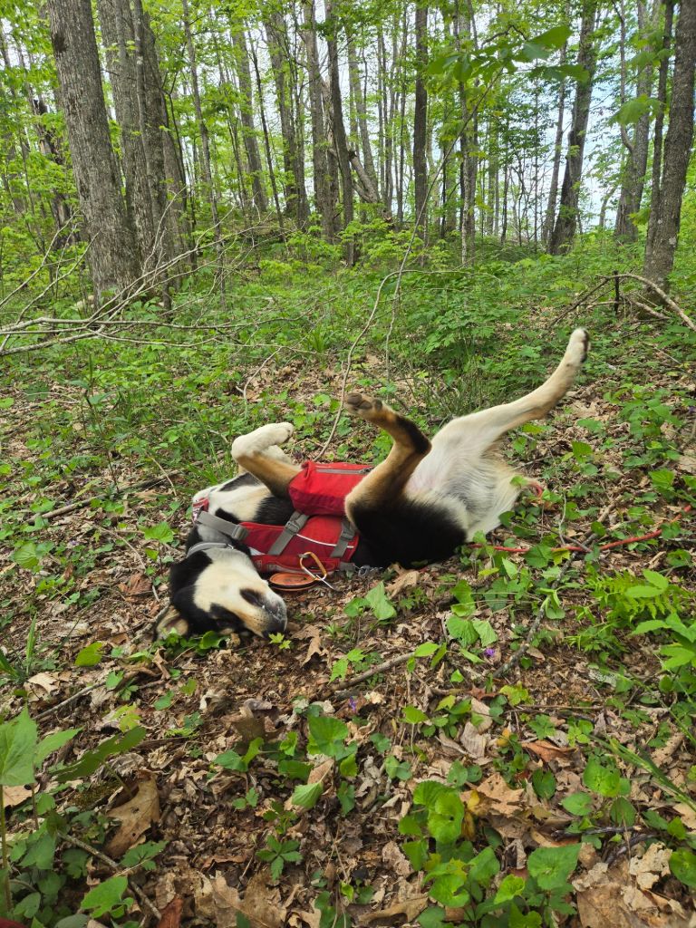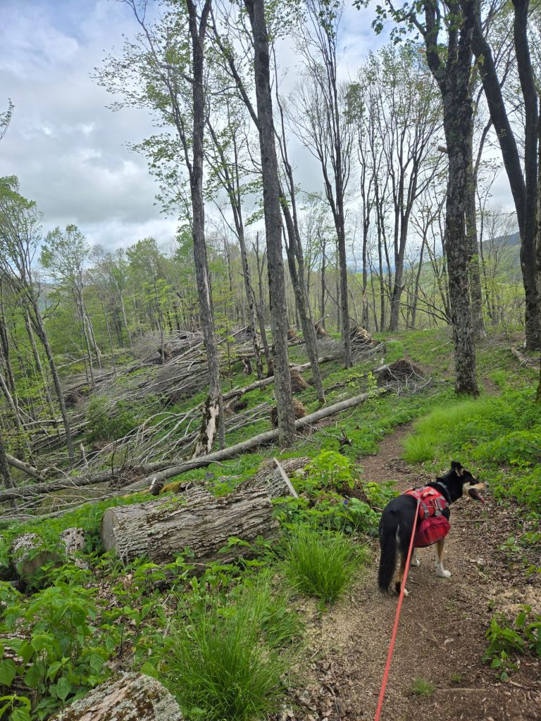 When Bo and I hit the 107 road, all the FarOut comments began to make sense because up until then, I hadn’t thought the reroute was too bad. The Forest Service had cut hand line and installed log steps that weren’t back filled straight up and straight down a very steep hill. Each time you stepped on one of the steps, it wobbled, threatening to give way and turn into a bumpy and splintery slip and slide. The comments definitely oversold the reroute. Then again, they oversell most things on the trail, lol. We just had to go slow and step carefully, and we made it past just fine.