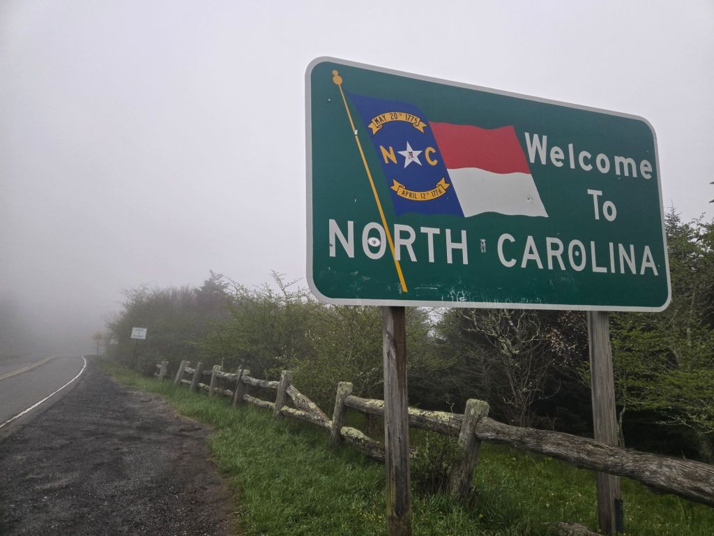 We saw the NC sign and then followed the comments down the gaurdrail to where it said there was a good campsite-and it did not disappoint! It got cold and started to rain so I ate dinner in the tent.